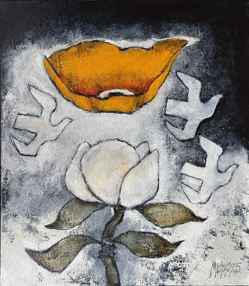 Yellow poppy, magnolia & 3 doves